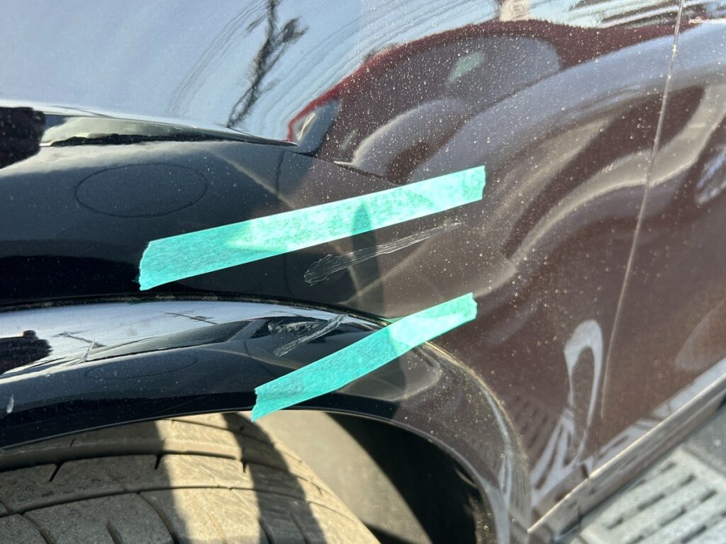 ポルシェ カイエンのフロントバンパーに、複数の深い擦り傷が確認できます。