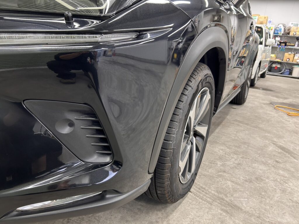 レクサス NXの黒い上品なボディカラーに合わせた塗装を施し、修復箇所が目立たない仕上がりになりました。