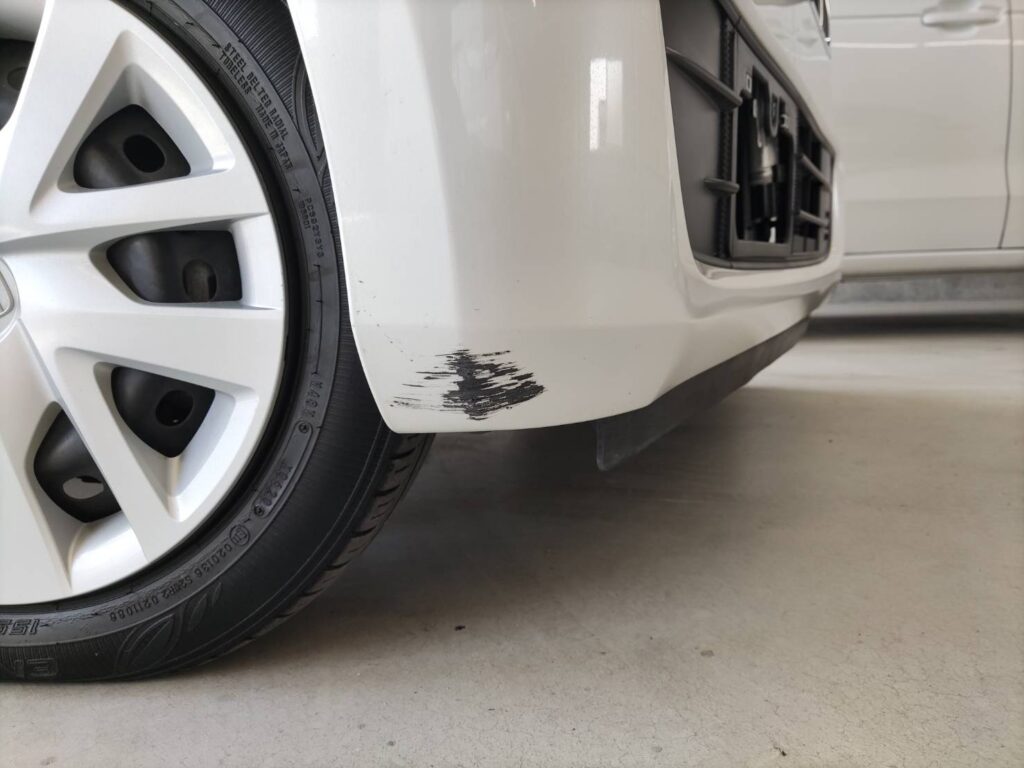 ホンダ Nボックスのフロントバンパーに目立つ擦り傷ができていました。