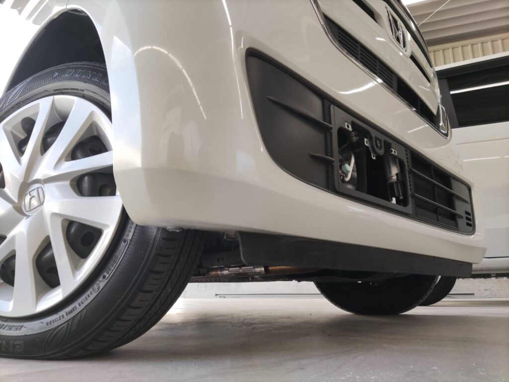 ホンダNボックスのフロントバンパーの擦り傷修理も、出張カーリペアでこのように美しく仕上がります。お車の傷の修理でお困りでしたら、ぜひご相談ください。