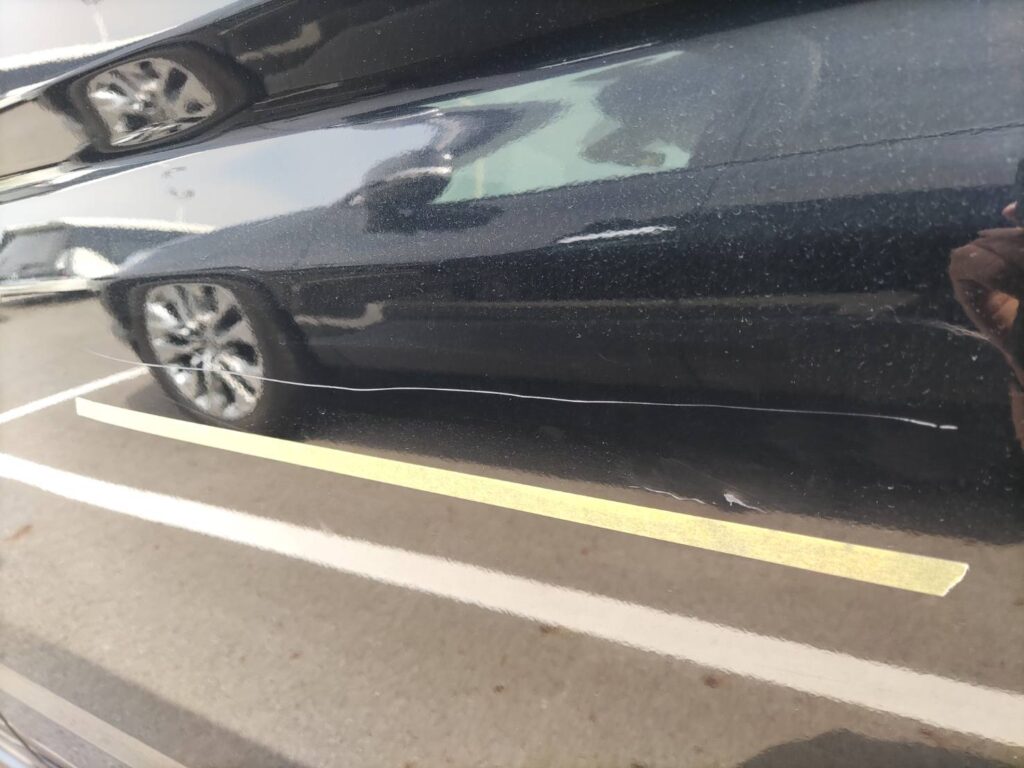線傷を板金塗装で整え、違和感の少ない周囲と一体感のある仕上がりになりました。