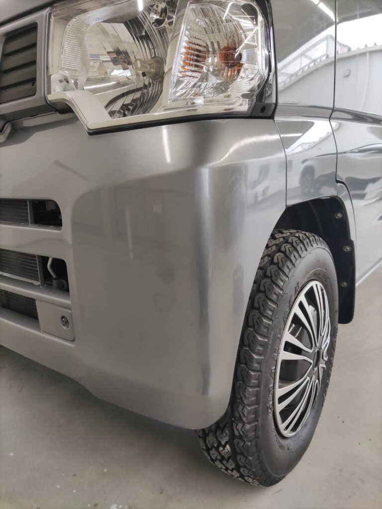 日産 クリッパーの左フロントバンパーに飛び石のような擦り傷が多数ついていました。