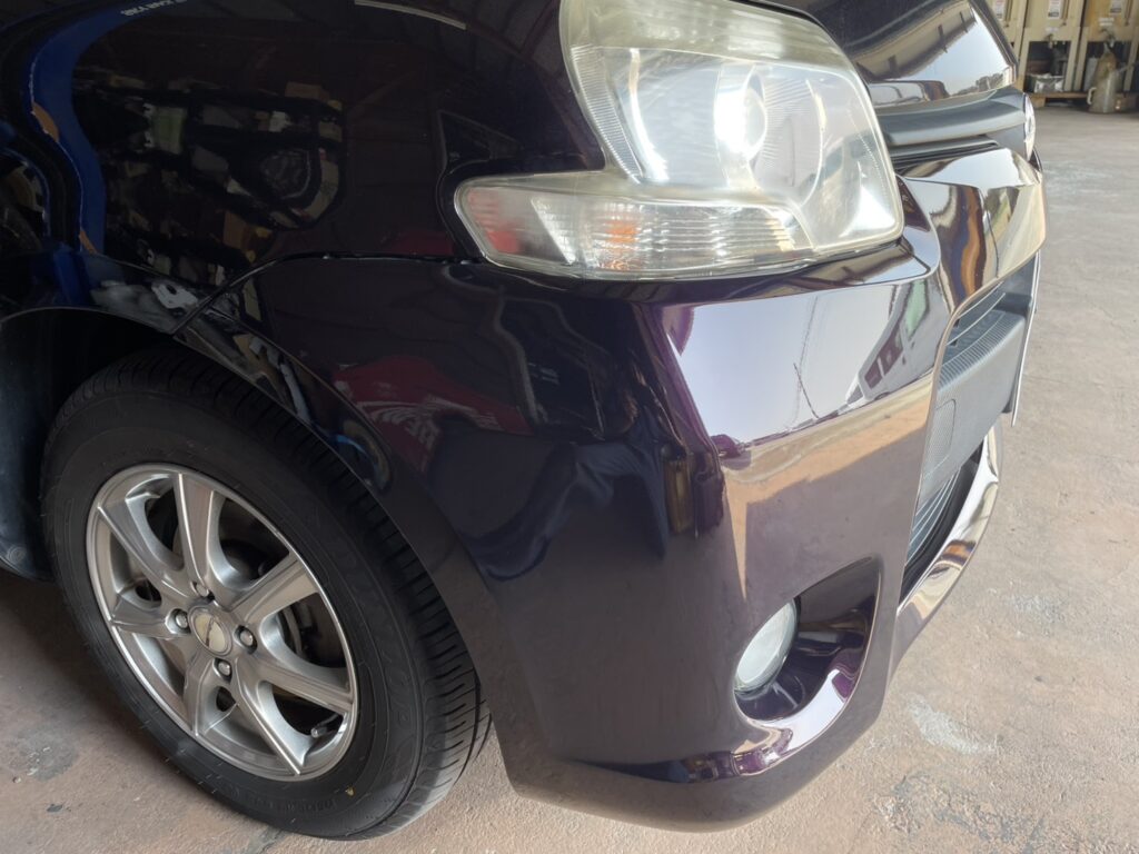 板金塗装の専門的な技術により、フロントバンパーを滑らかな状態に整えました。さらに、シエンタのボディカラーに合わせて調色と再塗装を施すことで、修理跡がパッと見ただけでは分からないほどの自然な仕上がりを実現しました。
